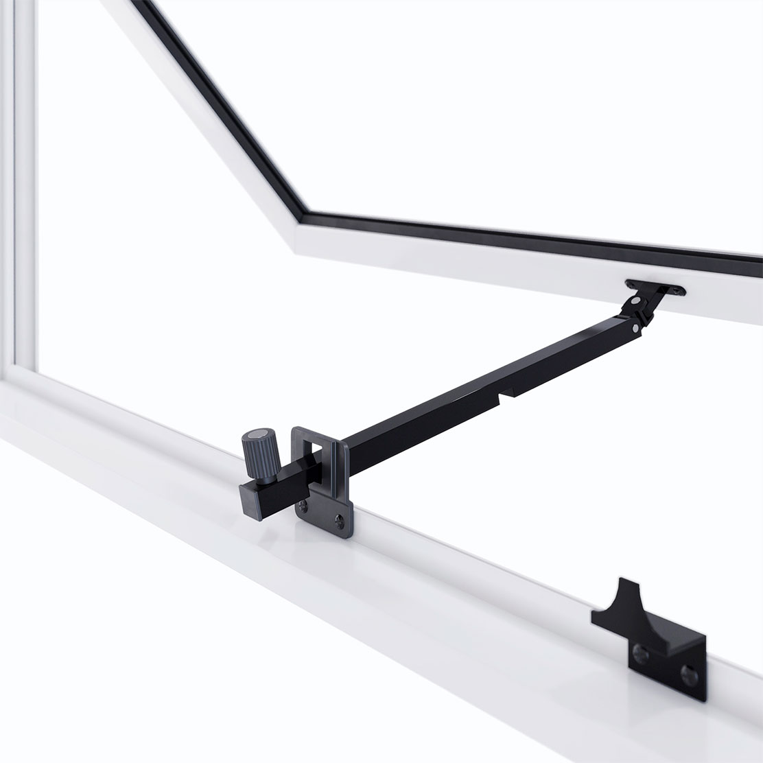 LINEA HERRERO Tipología PROYECTANTE con brazo de empuje Marco Abierto sin desagües Hoja contacto simple Vidrio de 3mm de espesor COLOR BLANCO – Sin tapajuntas VARIAS MEDIDAS